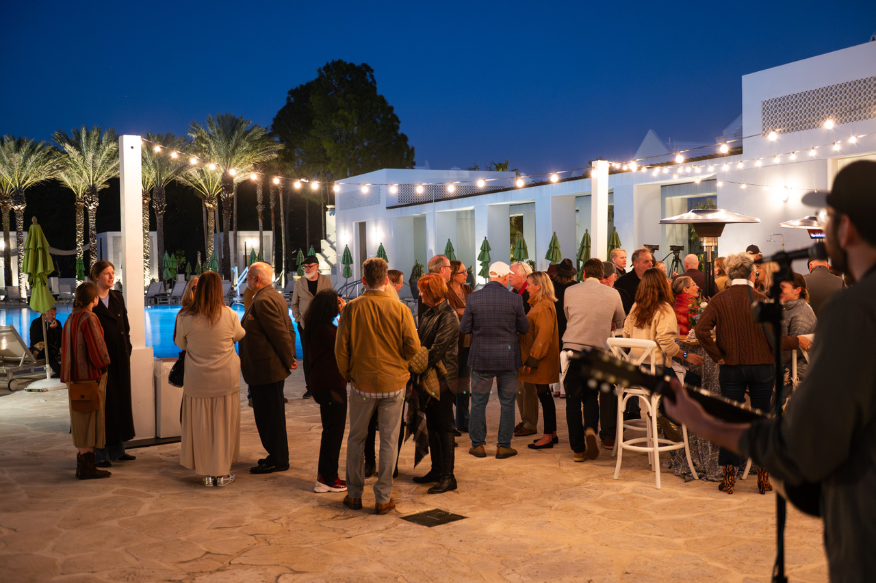 Khoury-Vogt Architects welcomed clients, sponsors, friends, and the Seaside Institute Board of Governors on Thursday evening to the Palmer House for a sunset reception. The Palmer House, designed by KVA, served as a welcoming venue where the homeowners graciously hosted attendees for the evening gathering on Camp Creek Lake overlooking both the lake and the Gulf. The home was meticulously designed in the style that Khoury-Vogt Architects are known for, creating a memorable experience for all who attended.